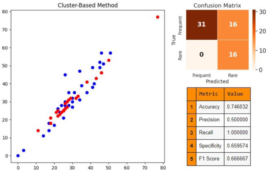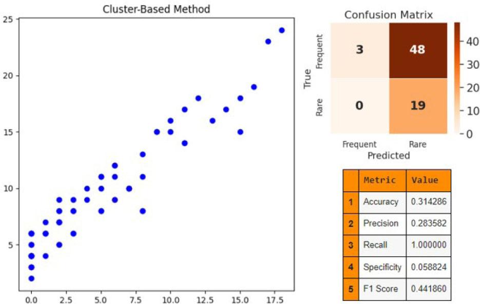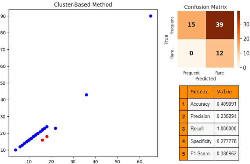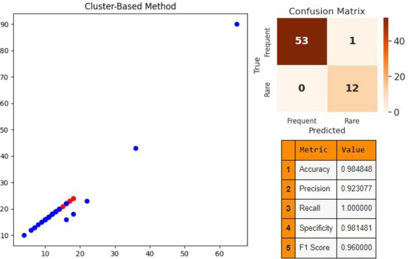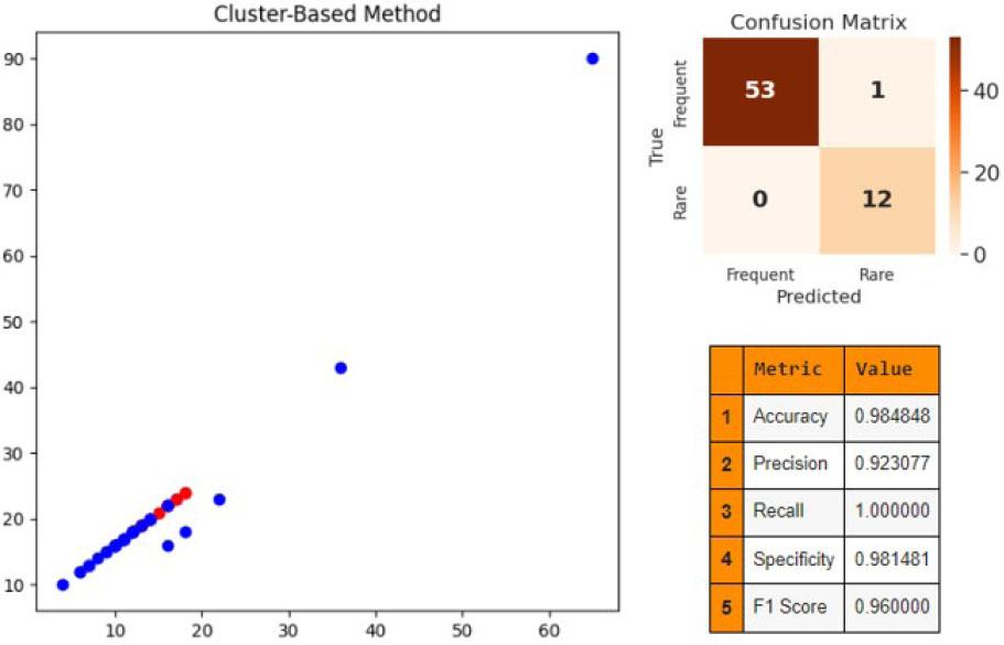 The findings underscored the superiority of the Cluster-based Method (CBM) over Isolation Forest and Support Vector Machines (SVM) in terms of performance metrics such as accuracy, recall, and F1-score. Notably, Isolation Forest performed better than SVM, highlighting its potential for anomaly detection tasks.