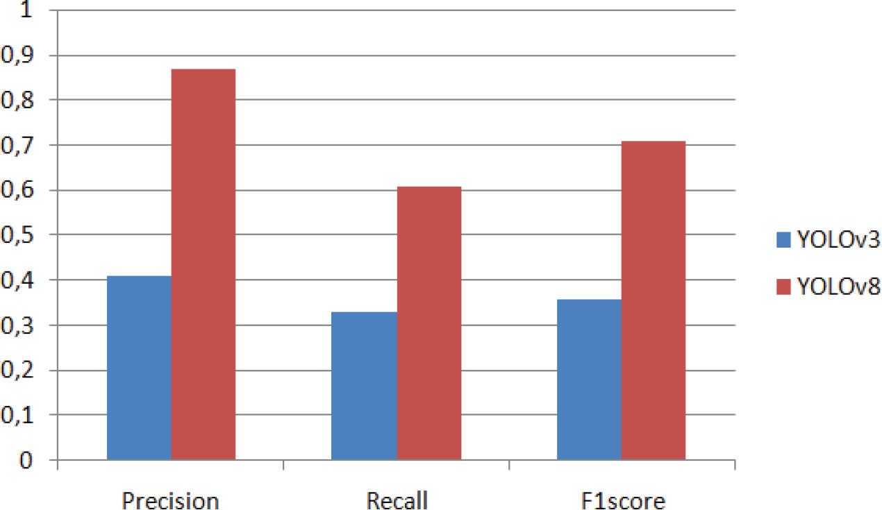 | YOLOv8 | 0.87 | 0.61 | 84.62 | 0.71 |