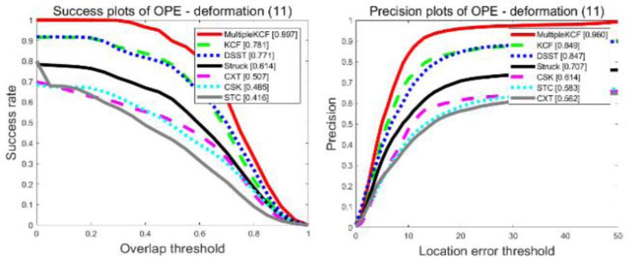 | Challenge | deformation | Illumination | Motion blur | Fast moving | Background clutter | Out of plane | In-plane rotation |