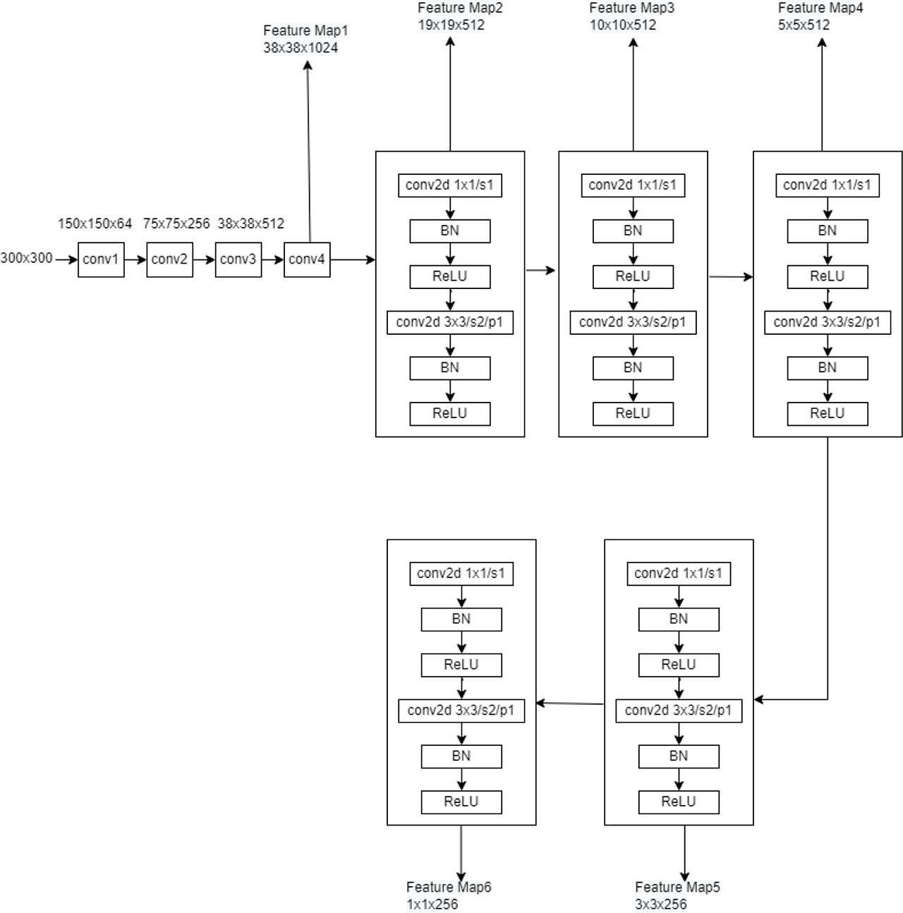 38×38×1536,19×19×1024,10×10×768,5×5×512,3×3×512,1×1×256.