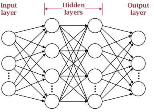 Where x0 and y denote the input and output. θ Represents the optimal parameter solution of mapping between known input and expected output values. In general, DNN have a multilayer structure consisting of many functional units, as shown in Figure 2, with multiple hidden layers between the input and output layers.