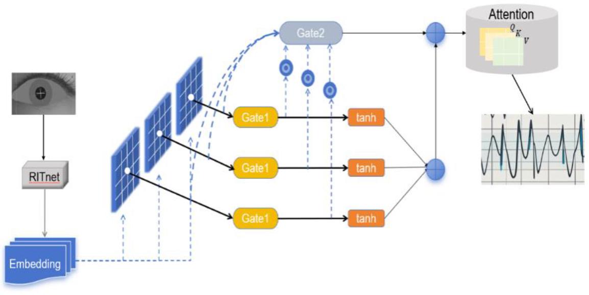 In this paper, the main task of the Embedding layer is to convert the continuous pupil position information output by RITNet into embedded vectors of fixed dimensions. This process is similar to the word vector embedding in natural language processing, which can compress the original position information into a vector space with semantic characteristics, which is convenient for model processing and understanding.