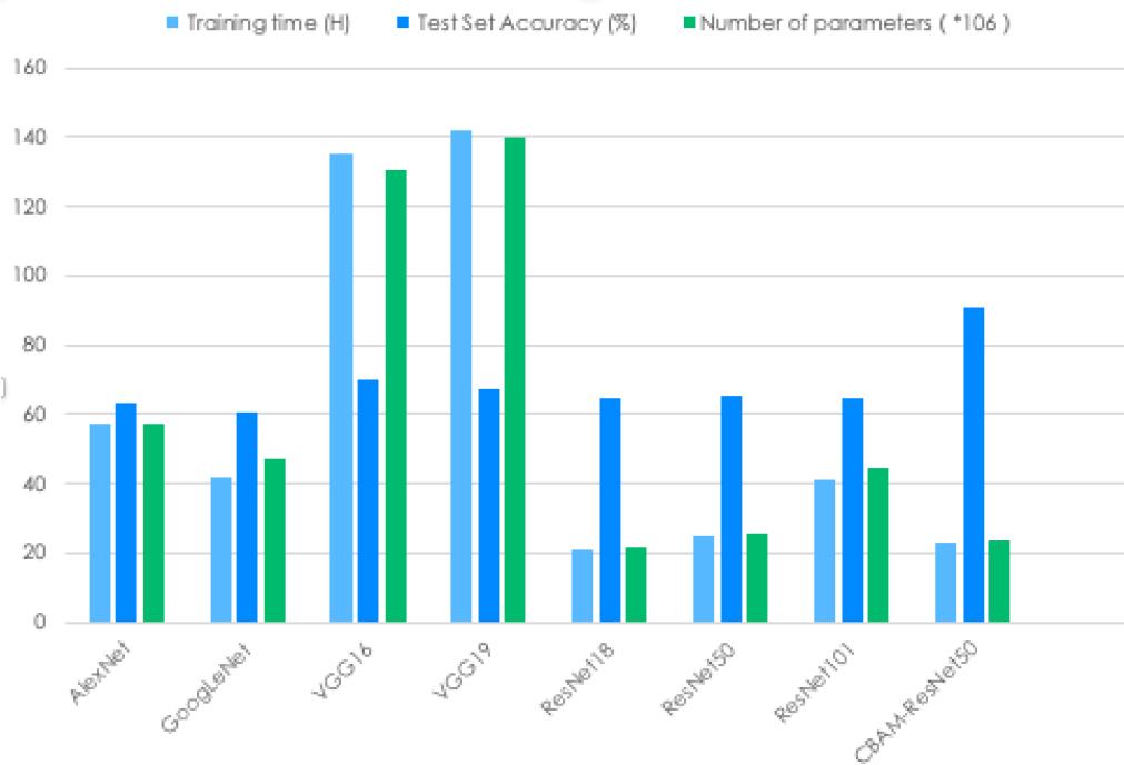 | Model | Test Set Accuracy (%) | Training time (H) | Number of parameters |