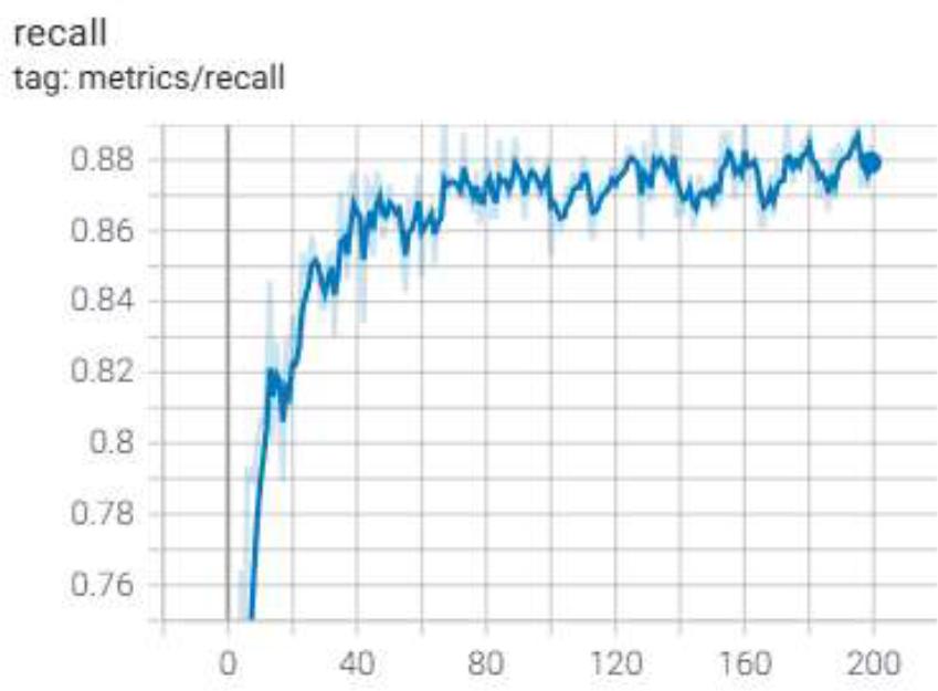 A high recall indicates that the model can effectively identify all positive instances, which is crucial in many application scenarios. However, it is important to note that pursuing a high recall often comes with a relatively high false positive rate, meaning that the model may incorrectly classify some negative samples as positive. This trade-off needs to be handled carefully in practical applications to ensure that the model achieves a balance between accuracy and recall. As shown in Figure 5, the recall performance metrics in this experiment are clearly demonstrated, further validating the model's effectiveness and reliability in the mask recognition task.