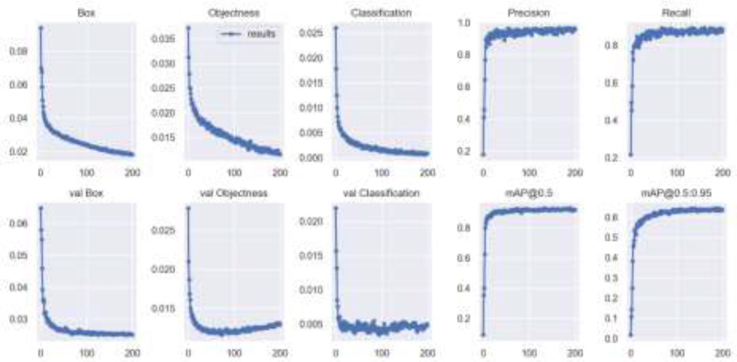 During training, labeled data was used, and through backpropagation and optimization of the loss function, the model's detection and recognition abilities were significantly improved. To assess its performance, metrics like AP (Average Precision) and mAP (Mean Average Precision) were employed, which helped refine the model and reduce false positives and false negatives, leading to enhanced overall accuracy in recognition.