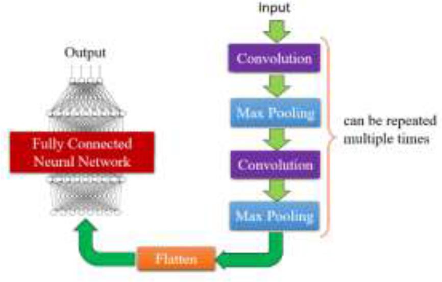 The pooling layer in CNNs down samples feature maps, reducing dimensionality and computational complexity while enhancing translation invariance and preventing overfitting. Typically placed after the convolutional layer, it helps the model focus on essential image features. Max pooling is a widely used technique that selects the maximum value from a 2×2 or 3×3 window, typically with the stride equal to the window size. The formula is given in Equation (4).