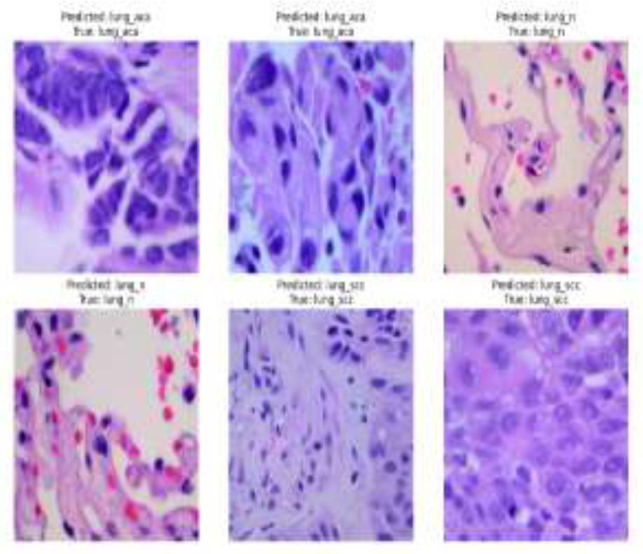 In order to improve the model's capacity for generalization, a variety of data augmentation methods were utilized on the images throughout the training process. These methods included arbitrary horizontal flipping, rotation, and translation shear. The images were also resized to 224x224 pixels and normalized using the mean and standard deviation from the ImageNet dataset, with values (mean = [0.485, 0.456, 0.406] and standard deviation = [0.229, 0.224, 0.225]). Data augmentation increased the diversity of the training data, helping the model learn more transformed features, thereby improving its performance in various scenarios. The images underwent random horizontal flipping with a probability of 10%, while the rotation range was set between -10 and +10 degrees. Random cropping was applied to adjust the images to the target size (224x224), with a cropping ratio ranging from 90% to 110%. Additionally, random transformations through translation and shear were applied, with a maximum transformation of 10%, helping the model adapt to different perspectives and spatial positions. The illustration in Figure 10 displays nine arbitrarily chosen enhanced images derived from the lung cancer pathological training dataset. The images are equally distributed across three different types of lung cancer: lung adenocarcinoma, normal lung tissue, and lung squamous cell carcinoma, as mentioned in [14].