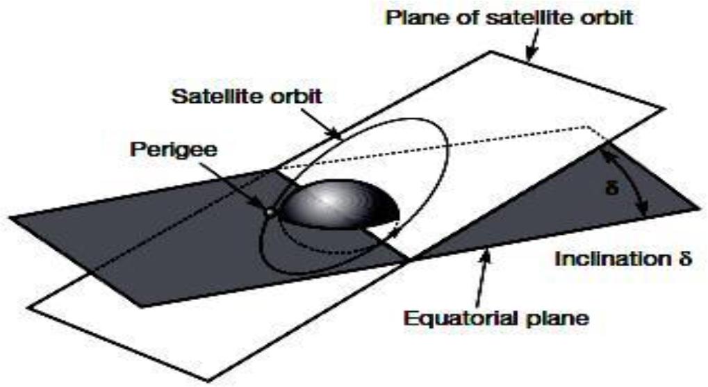 A satellite functions as a microwave repeater station, enabling multiple users with compatible earth stations to transmit or exchange information in various formats. Communication between satellites occurs through the use of radio waves, which transmit signals to antennas located on Earth. These antennas receive the signals and process the information contained within them. Typically, satellites are positioned in geostationary Earth orbit (GEO), allowing them to maintain a fixed position relative to the Earth's surface. Given that microwave signals necessitate an unobstructed line of sight, satellites are placed in space to prevent interference caused by the curvature of the Earth. Key parameters in satellite communication include the angles of elevation and inclination (see. Fig 1). The angle δ represents the angle formed between the plane of the satellite's orbit and the equatorial plane; this angle is zero when the satellite is positioned directly above the equator. In cases where the satellite follows an elliptical trajectory, the point of closest approach to the Earth is referred to as the perigee (Barigelli, 2022; Scappaviva, 2022).