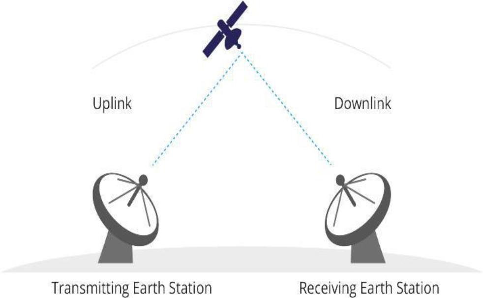 A satellite band is segmented into two components: the uplink, which transmits signals from the ground to space, and the downlink, which conveys signals from space to the ground, as illustrated in Fig 2. These components function on separate frequencies, each utilizing distinct microwave repeaters that are calibrated to capture the corresponding signals. This configuration prevents the downlink signals from being recaptured, thereby avoiding potential jamming of the system. Generally, the uplink frequency designated by the International Telecommunication Union (ITU) is higher than that of the downlink frequency. This is primarily due to the relative ease of generating radio frequency power at ground stations compared to onboard satellites. Typical downlink frequencies are 4 GHz, while uplink frequencies are around 6 GHz (Park, 2023; Choi, 2024; Ravindran, 2025).