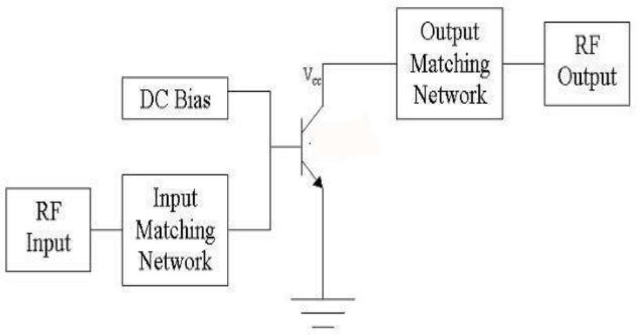 The low noise amplifier includes the input matching network, the microwave transistor and the output matching network as shown in Fig.3.