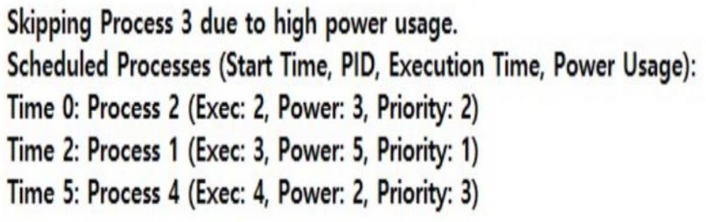 To simulate a power-optimized scheduler that prioritizes processes based on both their urgency such as deadline or priority and power consumption. Here the processes each has attributes like execution time, power usage, and priority. Then the power budget has max allowable power usage per time unit. The scheduling goal has maximized performance within the power budget. And scheduling policy uses a custom algorithm such as power-aware shortest job first or dynamic power scheduling.