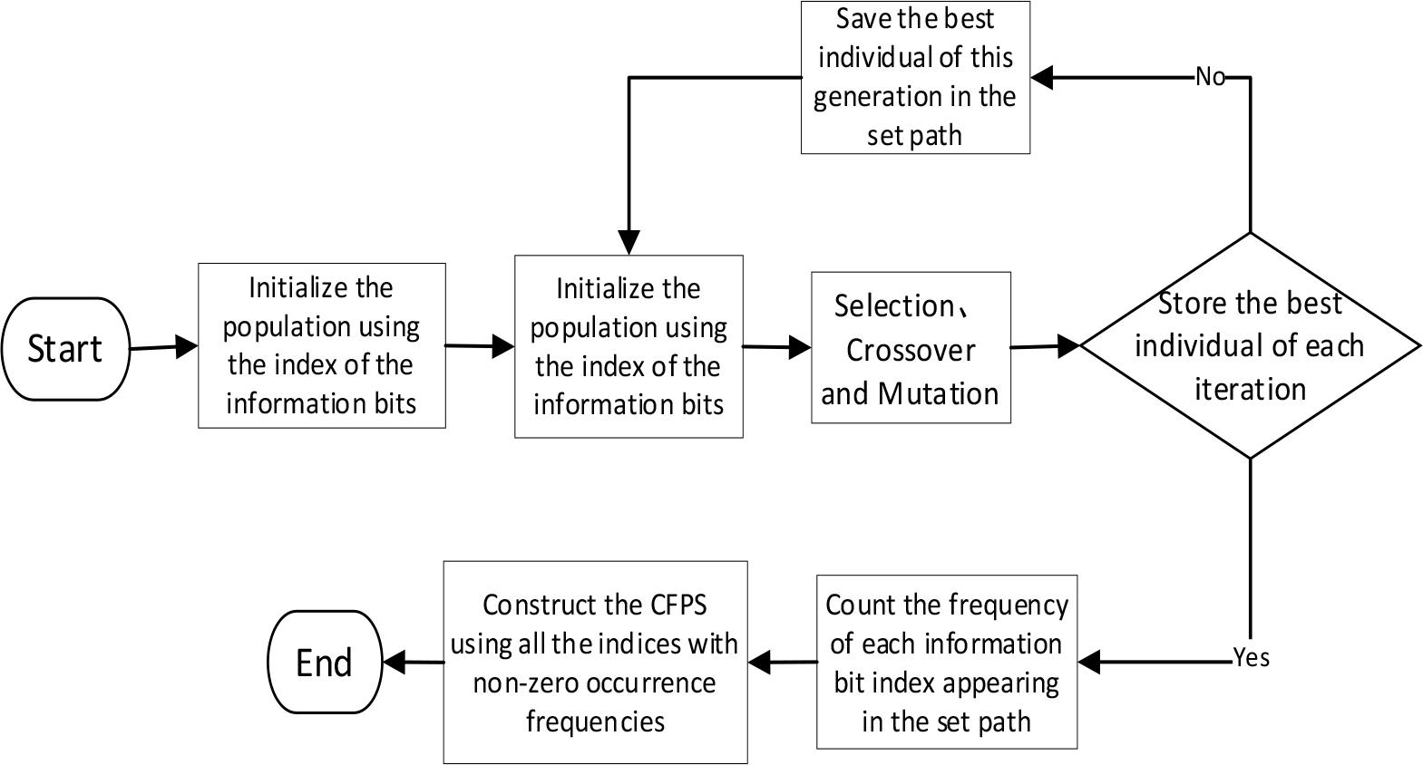 Flowchart of Belief Propagation Flipping Set Construction Based. on Adaptive Genetic Algorithm.