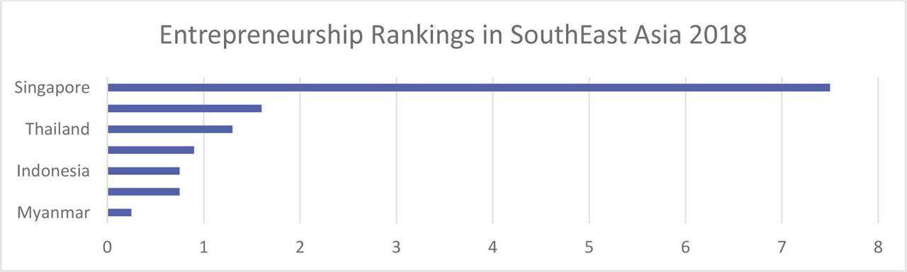 Based on figure 1, from US News & World Report 2019, Singapore won first place in the entrepreneurship ranking in South East Asia in 2018. As a city-state with limited natural resources on a small land area of less than 720 square kilometers, Singapore has recognised the significant role of entrepreneurship since its first encounter with the economic recession in 1985. In hours, Singapore was able to complete broadly recognised strategies as one of the easiest nations globally to do enterprise and incorporate a new business (Anthony 2015). The city-state sees more venture capital investments and has access to important foreign markets, and the Lion City was ranked the Asian Pacific leader for entrepreneurship (Henry 2014).