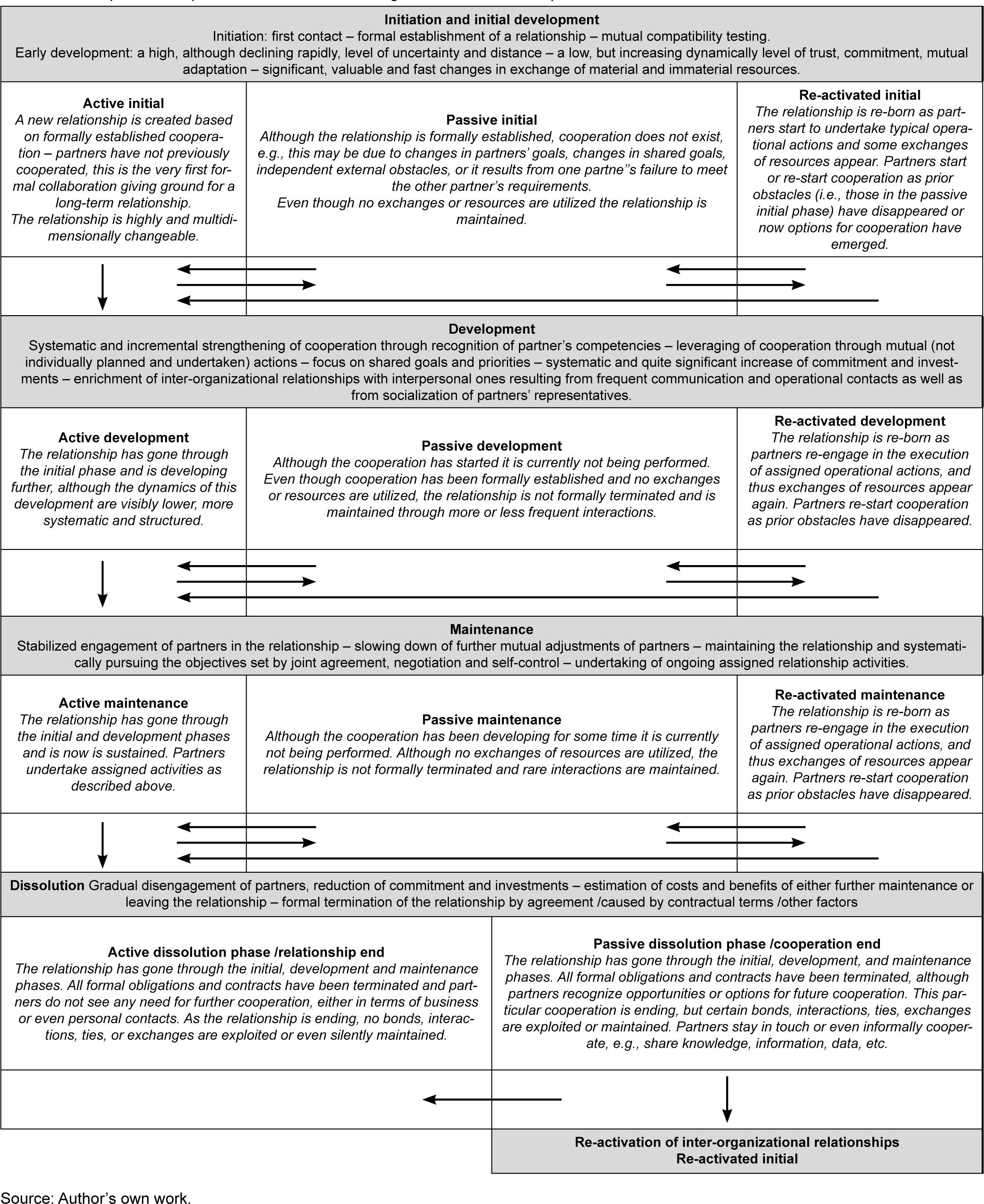 | Batonda & Perry | 2003 | Inter-firm network development phases – RLC | Adopted from literature review (e.g., Ford, 1980; Dwyer et al., 1987; Kanter, 1994; Wilson, 1995) | Multiple, in-depth case study (semi-structured interviews) | 12D (24) | Manufacturing & services industries | D /manufacturer – service | Australia-Asia | Searching Starting Development On-going maintenance Termination Dormant and re-activation a | non-L | PR | yes | yes |