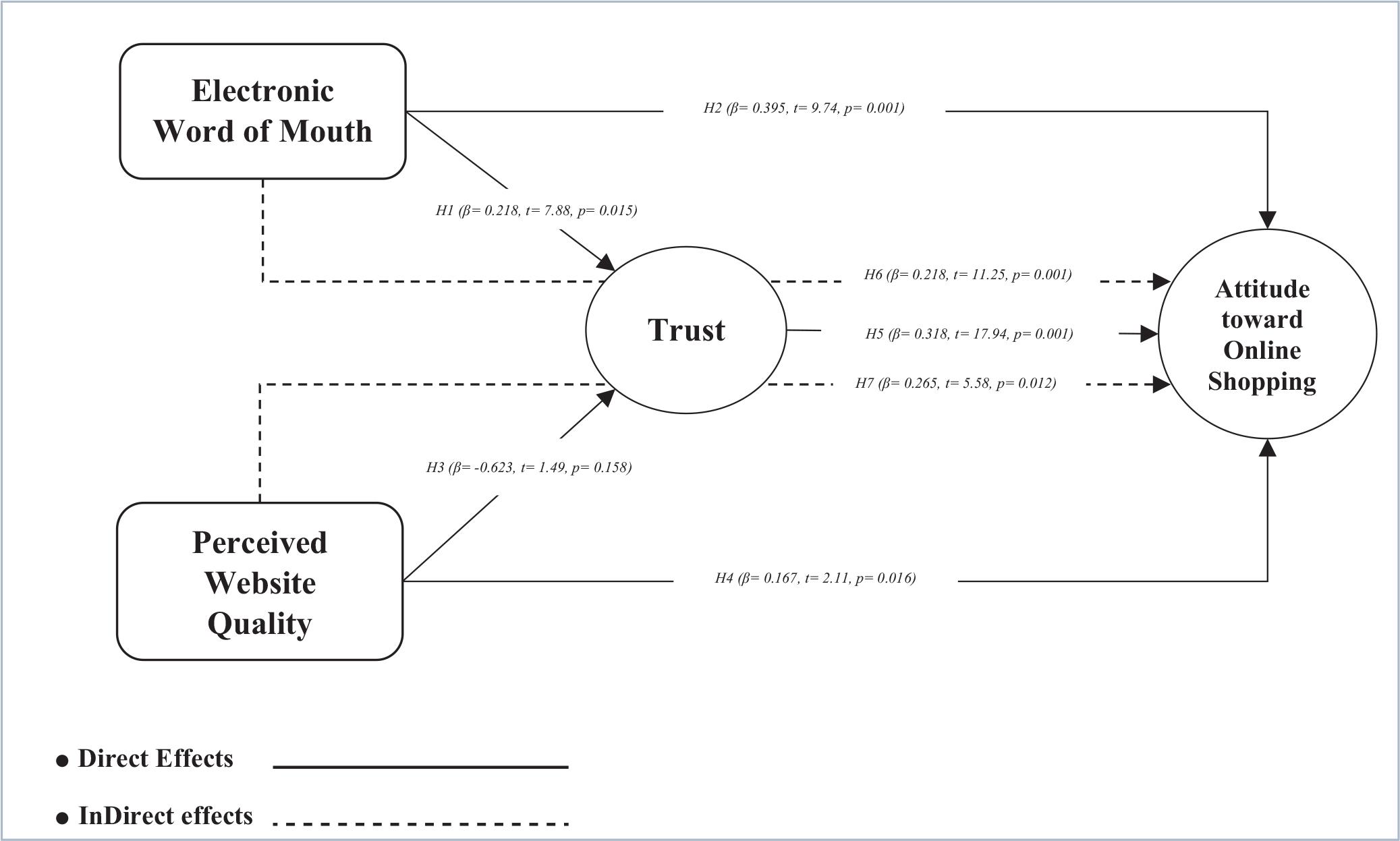 Figure 1 illustrates our framework, where trust mediates the impact of eWOM and perceived website quality on consumers’ attitudes toward online shopping.