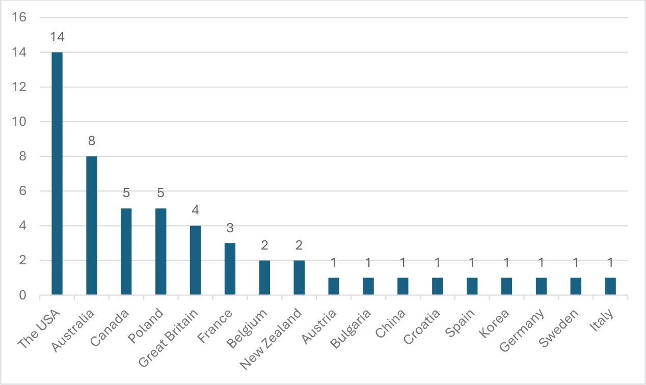 Interestingly, 42% of publications are case studies. The highest number of the cases described comes from the USA, followed by Australia, Canada, and Poland (Chart 3).