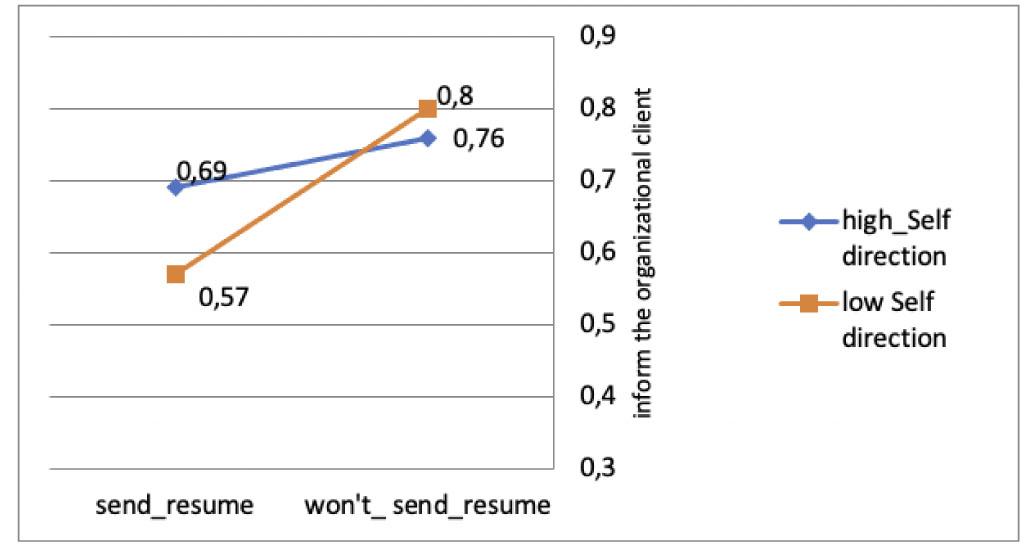 Interaction effect between self-direction, sending resumé, and the willingness to inform the organizational client about the mismatch.