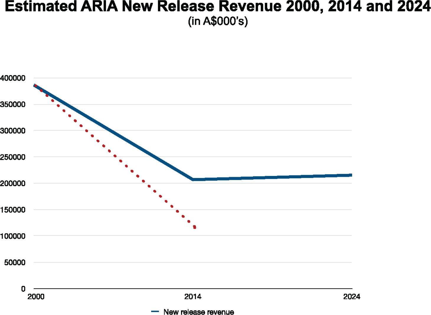 Estimated ARIA new release revenue in 2000, 2014 and 2024.