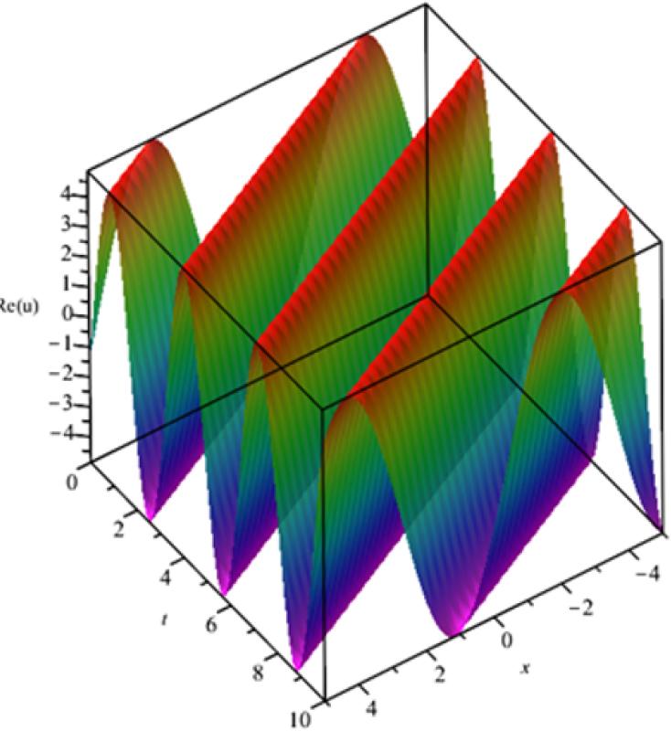 3D simulation of the exact solution of the equation (9) for Q = 1, s = 2, v = 0.5, β = 3.55, α = 0.1, C1 = 0.1.