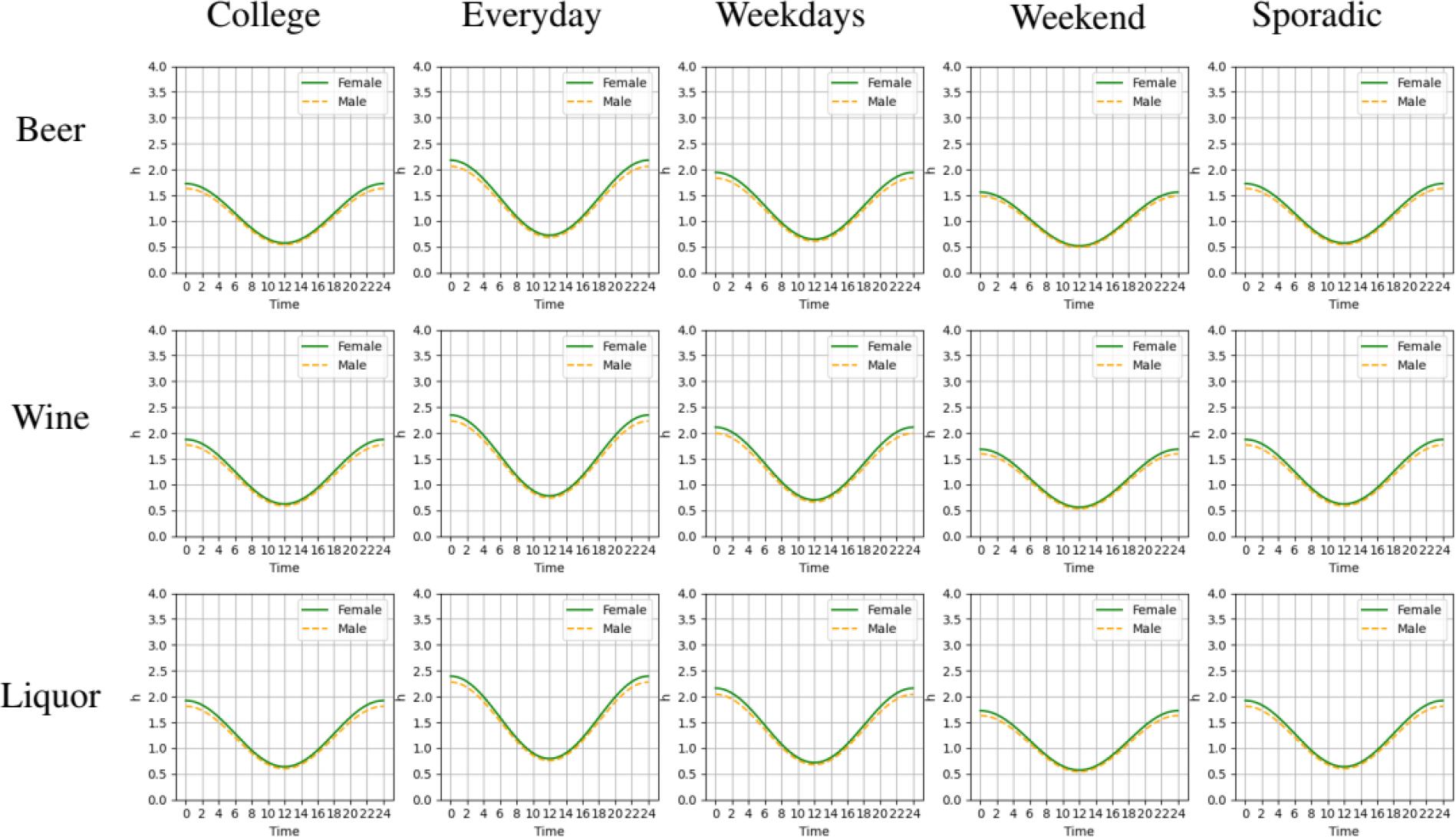 | λ | (varies) with λ ∈ [0,7] | Number of days per week (7 days) where alcohol was consumed of any quantity and type. |