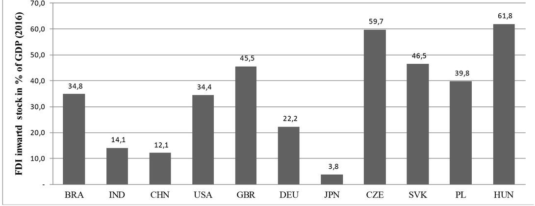 Corporate governance: foreign direct investment stock as share of gross domestic product [2016]. Source: UNCTAD World Investment Report 2016, Annex table 07.