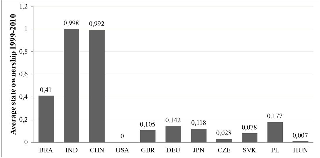 Corporate finance: state ownership of banks in percent (1999–2010). Source: Bertay, C.A. et. al. (2015): Bank ownership and credit ower the business cylce: Is lending by state less procyclical? In: Journal of Banking & Finance 50 (2015) 326-339.