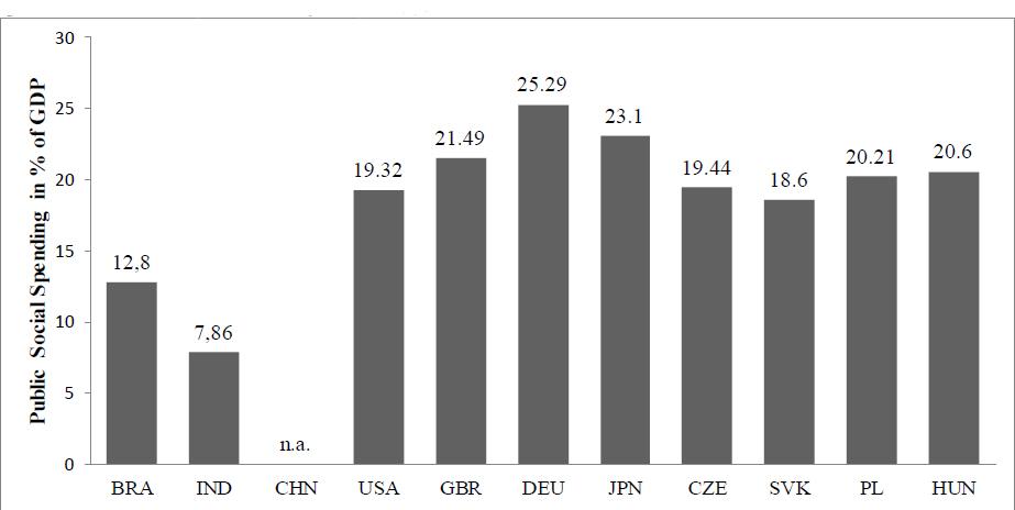 Industrial relations: levels of public social expenditure as percentage of GDP (2016). Source: OECD Social Expenditure database, UN Database on Social Investment in Latin America and the Caribbean, National Institution for Transforming India (NITI Aayog)