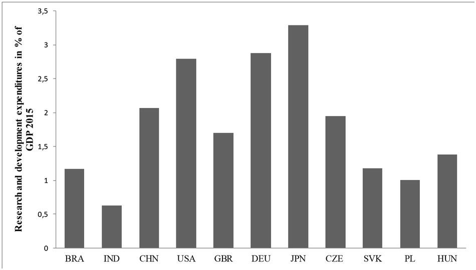 Innovation and training: public expenditures on research and development as a percentage of GDP. Source: World Bank Database