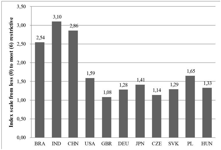 International economic integration: FDI regulatory restrictiveness index 2017. Source: OECD FDI Regulatory Restrictiveness Database