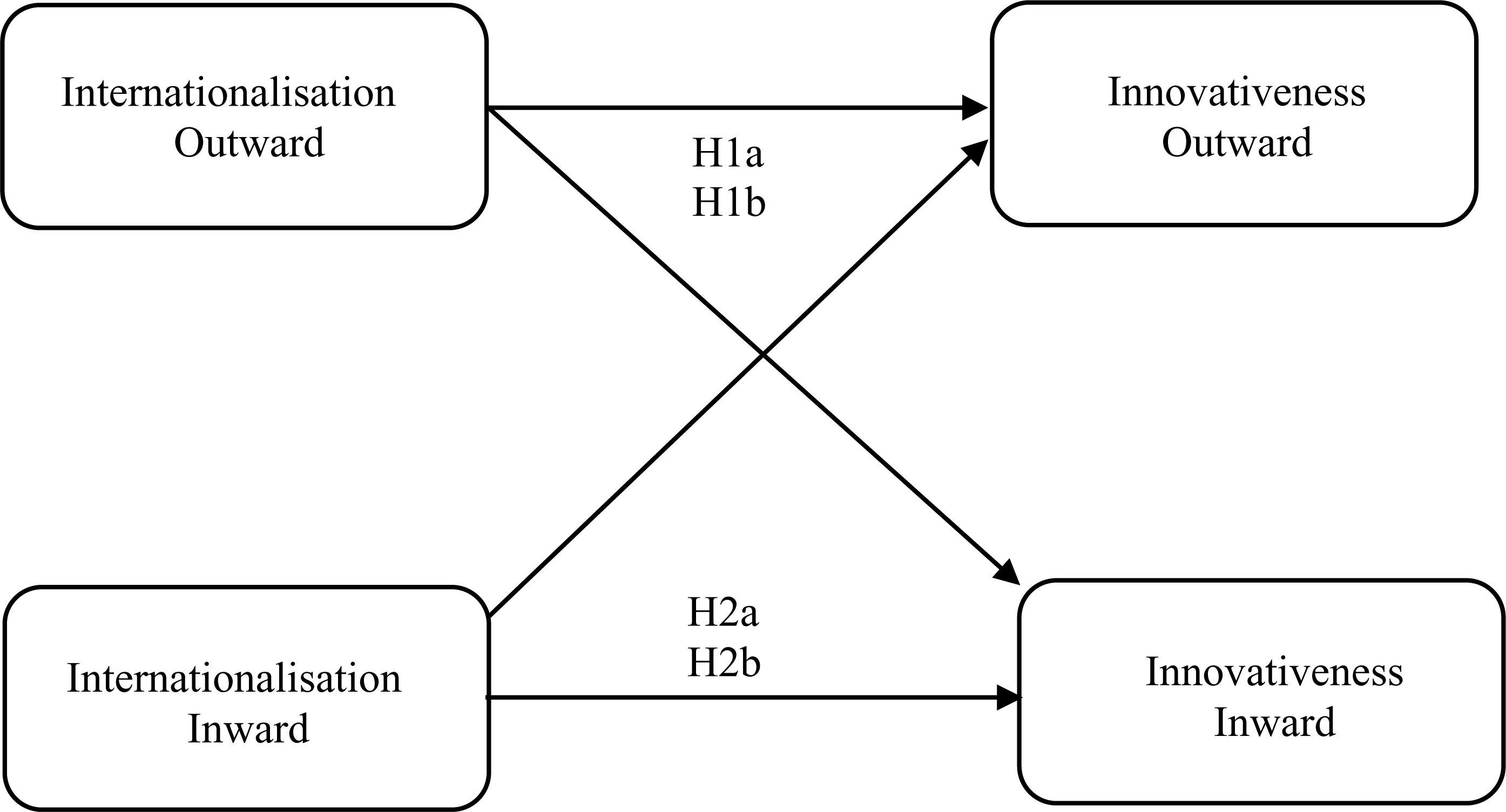 H2a: Inward internationalization is positively related with outward innovativeness. H2b: Inward internationalization is positively related with inward innovativeness.