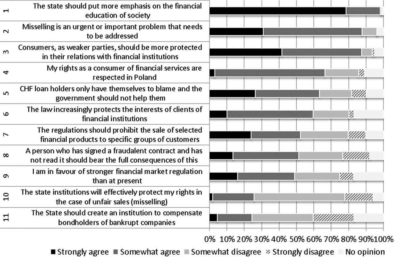 The results of the survey show that consumers should be encouraged to receive financial education, especially through public initiatives. However, it should be remembered that financial education is not enough to effectively protect consumers from misselling, because this also requires properly enforced laws that put the consumer in a privileged position over financial institutions [Ćwieląg and Maciejasz-Świątkiewicz, 2016, p. 68].