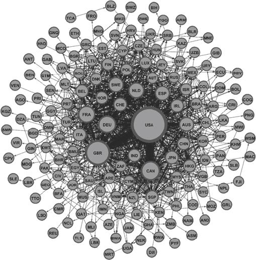 in-degree centrality – in this paper, it measures the number of incoming links that represent the investments in the country through CBM&A operations.