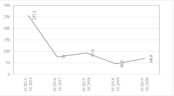 The analysis of the data showed that despite the trade liberalization processes under the WTO, consisting of a gradual reduction of tariff rates and efforts to eliminate other restrictive measures, the percentage of world trade subject to restrictions was already growing before the pandemic. In the years 2009–2017, it increased from 0.6% to 4.7% of the total value of international exchange. This already calls into question the effectiveness of liberalization activities under the WTO.