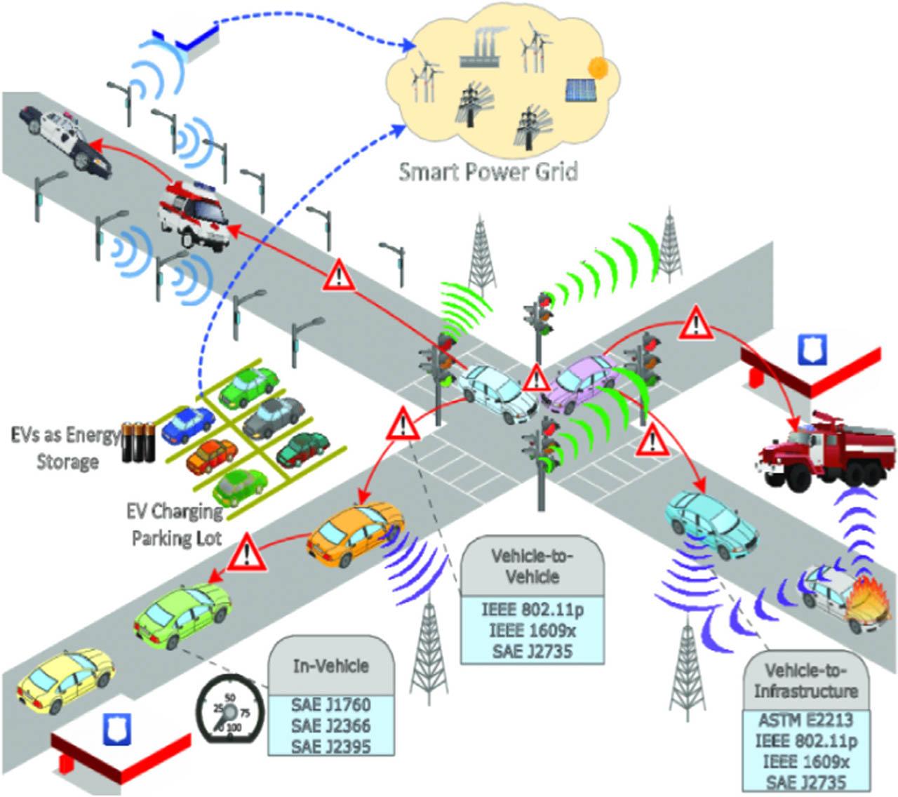 European Telecommunications Standards Institute (ETSI) developed architecture for the most appropriate protocol, on the other side IEEE created another protocol with a different way of working but supports the same vision and research direction. High node mobility and quickly changing network topologies: Because vehicles drive at different speeds, connections between them may not always be accessible, resulting in high mobility and/or rapid network changes in V2V (Ashley, 2013). Figure 1 describes the city’s holistic view of V2V connectivity.