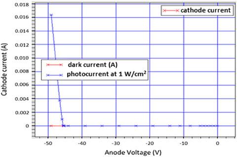 Figure 2 shows Reverse biased I–V characteristics of 5-Fingers based S = W design. Red line is representing dark current and blue line representing photocurrent at 1 W/cm2 light intensity.