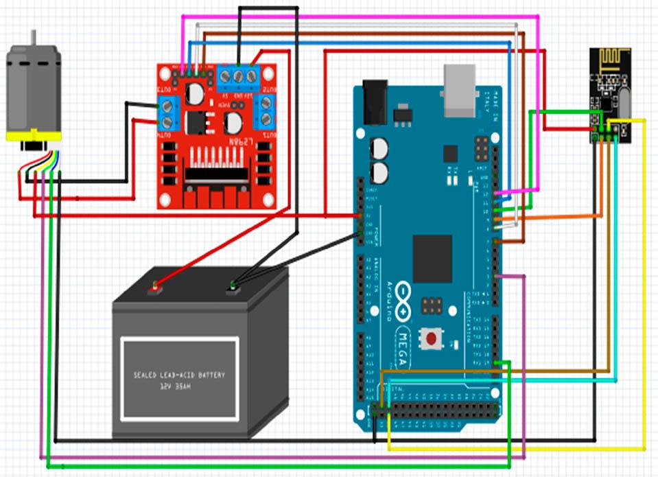 Figure 6 shows the wireless communication part of the electric wheelchair that makes use of the nRF24L01 module, with a maximum and minimum data transfer speed of 2 Mbps and 500 kbps, respectively (Bai et al., 2017). Furthermore, the platform used to process the electric wheelchair system is the Arduino Mega 2560, with the motor comprising of 500 rpm PG 45 and an encoder, named ems 30 H-bridge.