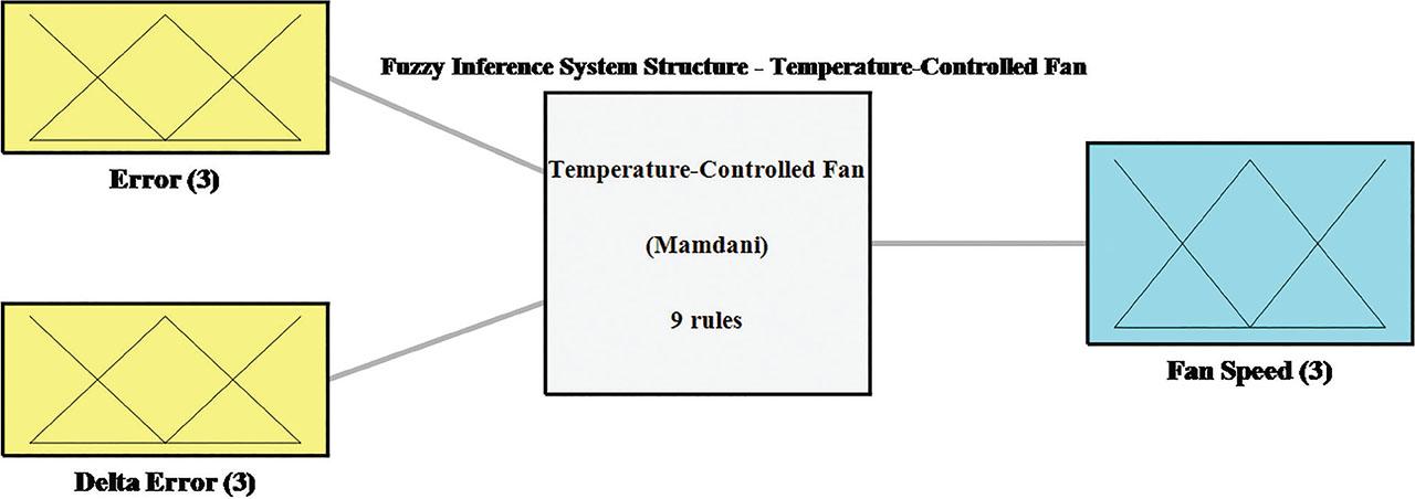 For the temperature-controlled fan system, the FIS is designed with two input variables: Error and Change in Error (Delta Error). These inputs represent the difference between the desired and actual temperature and the rate of change of this error, respectively.