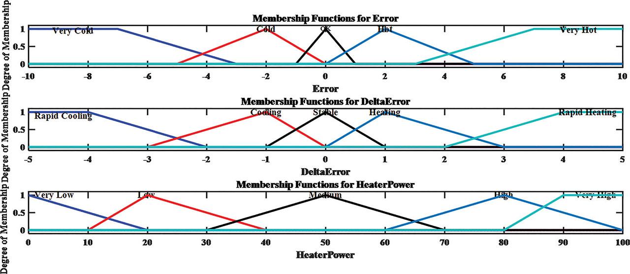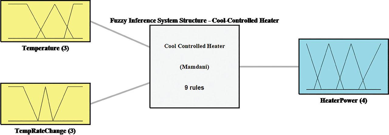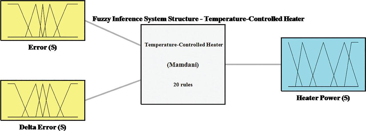 The temperature-controlled heater system is modeled similarly to the fan system but focuses on heating. The FIS for this system includes the following input variables, Temp Error and Temp Change Rate, which represent the temperature error and its rate of change.
