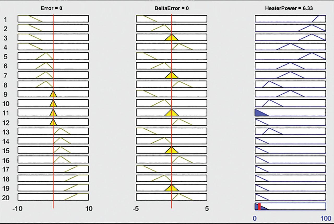 These rules adjust the heater power based on the current temperature and its rate of change. The warmer is sour off when the temperature is high, disregardless of the rate of change, to undefined energy. As the temperature decreases, the heater superpower is gradually increased, ensuring competent and sensitive warming control.