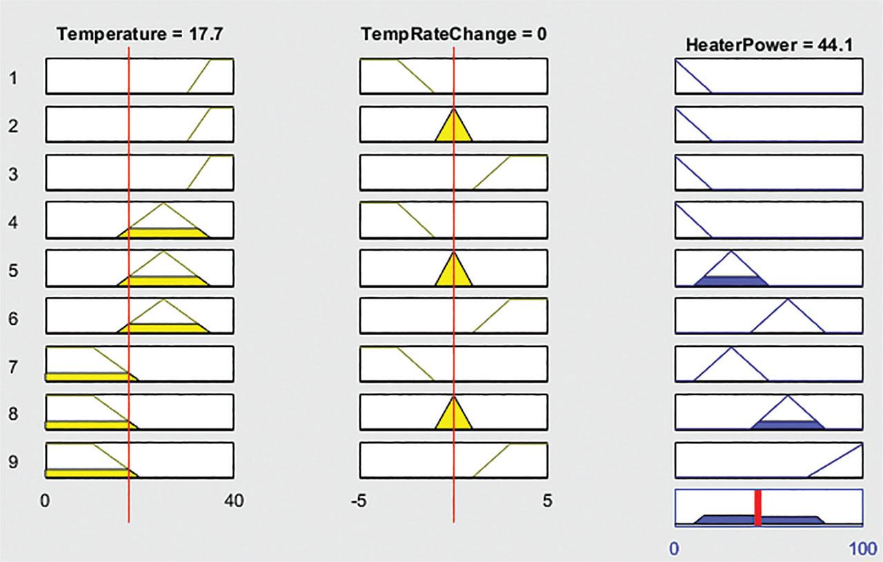 The rules adjust the heater power based on temperature conditions and their value of change to maintain optimal comfort and energy efficiency. Higher great power settings react to fast cooling in very cold conditions, while lower settings undefined energy when temperatures are stable or hot. This approach ensures a balanced and adaptive temperature control system.