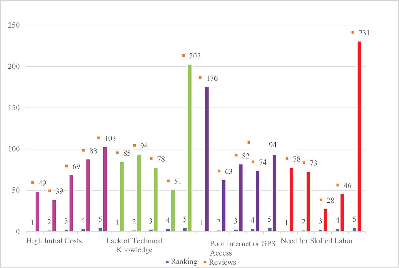 Farmers face numerous challenges in adopting new technology in agriculture, including risks, privacy concerns, technical knowledge, self-efficacy, infrastructure, initial cost, cultural factors, social media awareness, and personal innovativeness (Kizgin et al., 2020). Agriculturists place significant importance on avoiding risk and conducting thorough cost-benefit analyses (Binswanger, 1980; Chavas & Nauges, 2020).