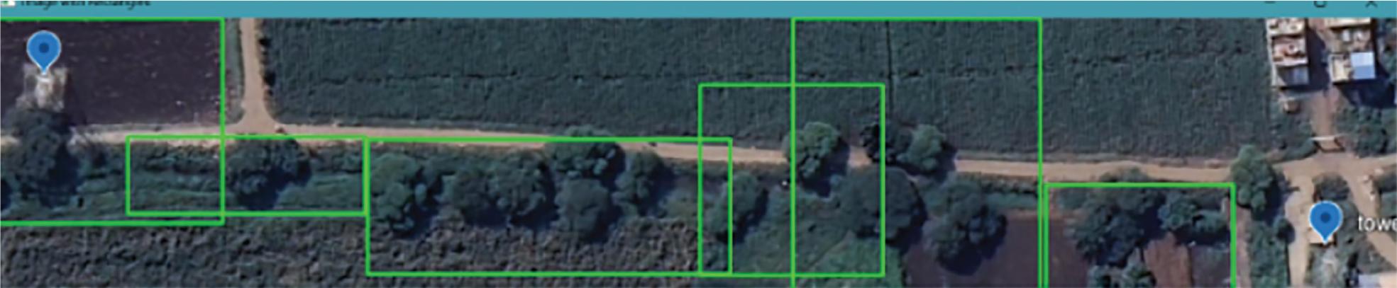 Severity detection algorithm: Once the preprocessing of vegetation from satellite imagery to crop grid corridor and vegetation pixels from satellite imagery is completed, step 2 is focused on developing a robustness severity detection algorithm. This algorithm was meant to quantify the degree of vegetation encroachment along the corridor and would feed its way into the web dashboard, allowing for visual indications of severity. The approach of using a research paper took advantage of contour detection, a popular computer vision technique. For the binary-inverted images that have been preprocessed, a dark pixel represented vegetation cover. Thus, by implementing contour detection algorithms, it became possible to group together areas of contiguous dark pixels, effectively outlining the detected sections of vegetation within the corridor. A separate step to create bounding boxes was added after each detected vegetation part. This generates a rough rectangle around each vegetation contour on the image. These bounding boxes served as a way to account for the size of each block of vegetation. We used a ratio-based metric of area ratios to quantify the severity of vegetation encroachment within the grid corridor.