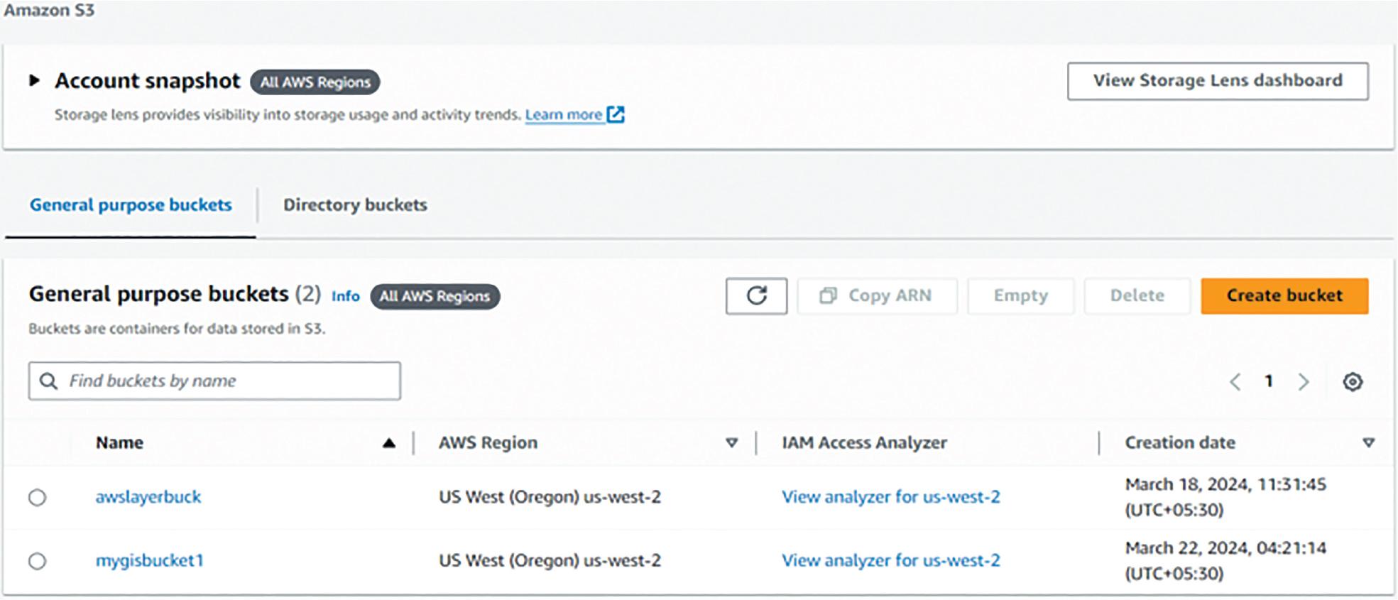 Snapshot of S3 bucket used as a data lake.