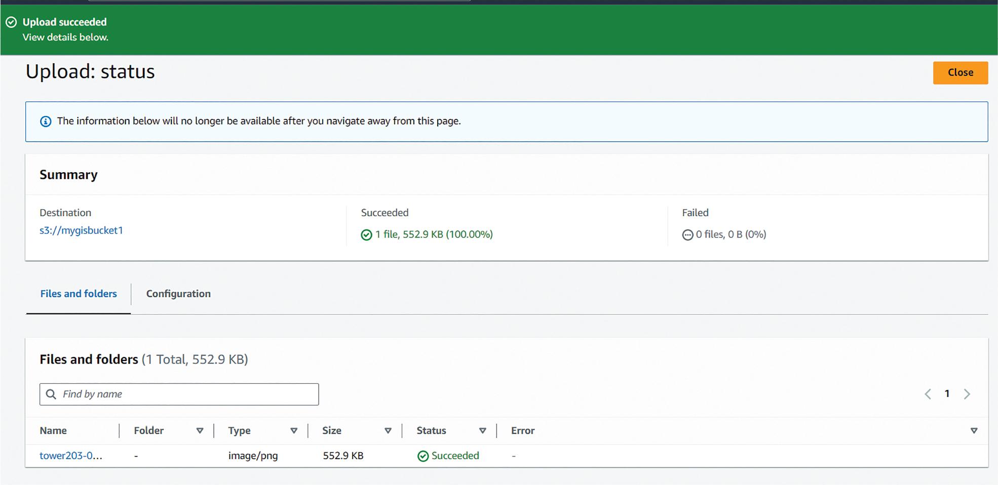 Image uploaded in the S3 bucket.