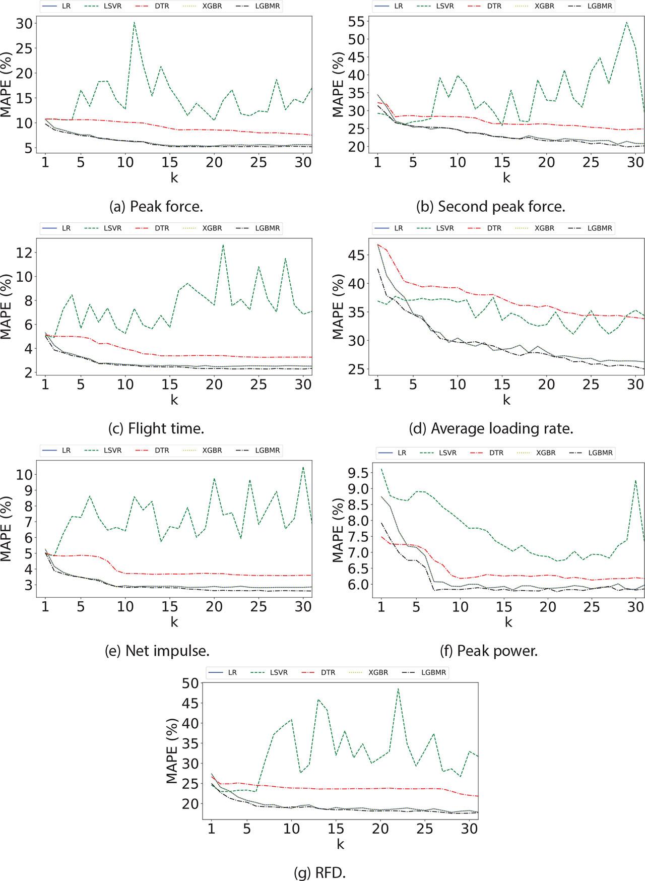 | Feature | Peak force | Second peak force | Flight time | Average loading rate | Net impulse | Peak power | RFD |