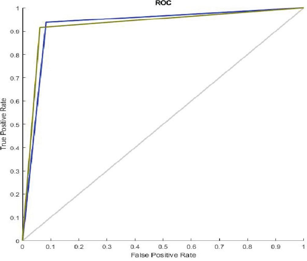 The ROC curve graph in Figure 13 depicts how well the proposed method works for different thresholds.