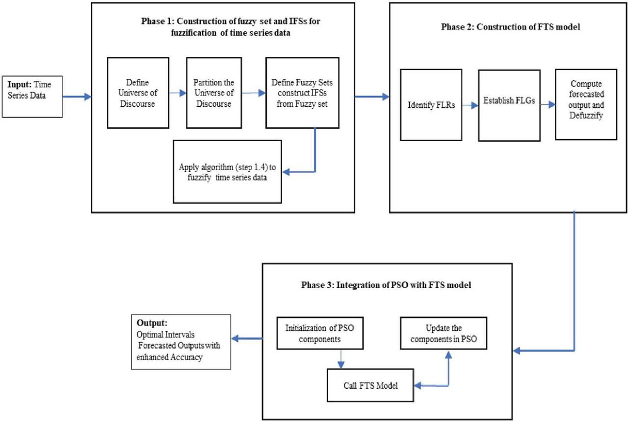 Diagram of the proposed PSO b IFS-based FTS forecasting method [19]. IFS, intuitionistic fuzzy set; PSO, particle swarm optimization.