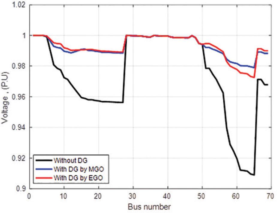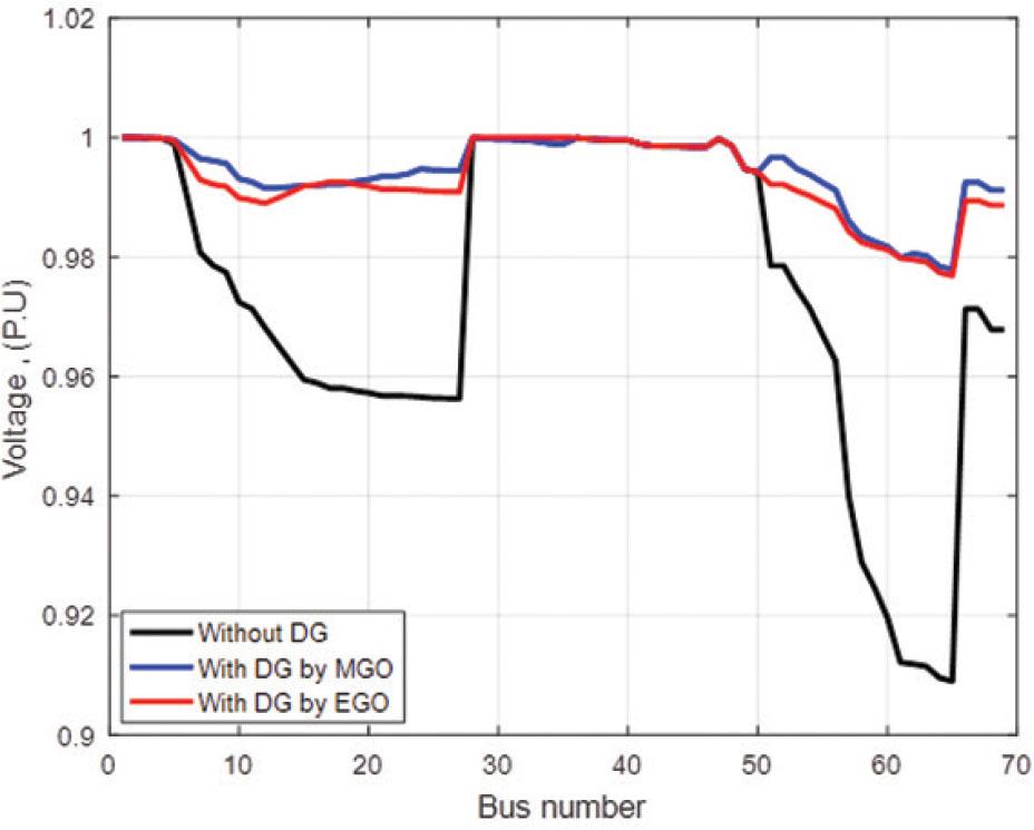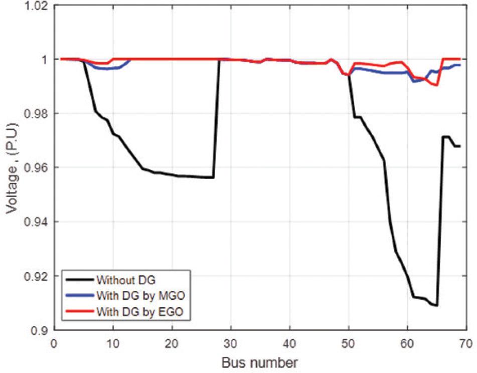 Comparison results of PVDG with maximized VSI (IEEE 69 BUS)