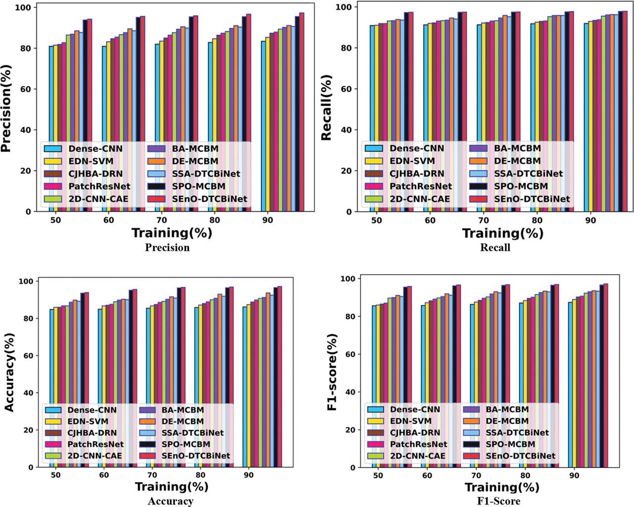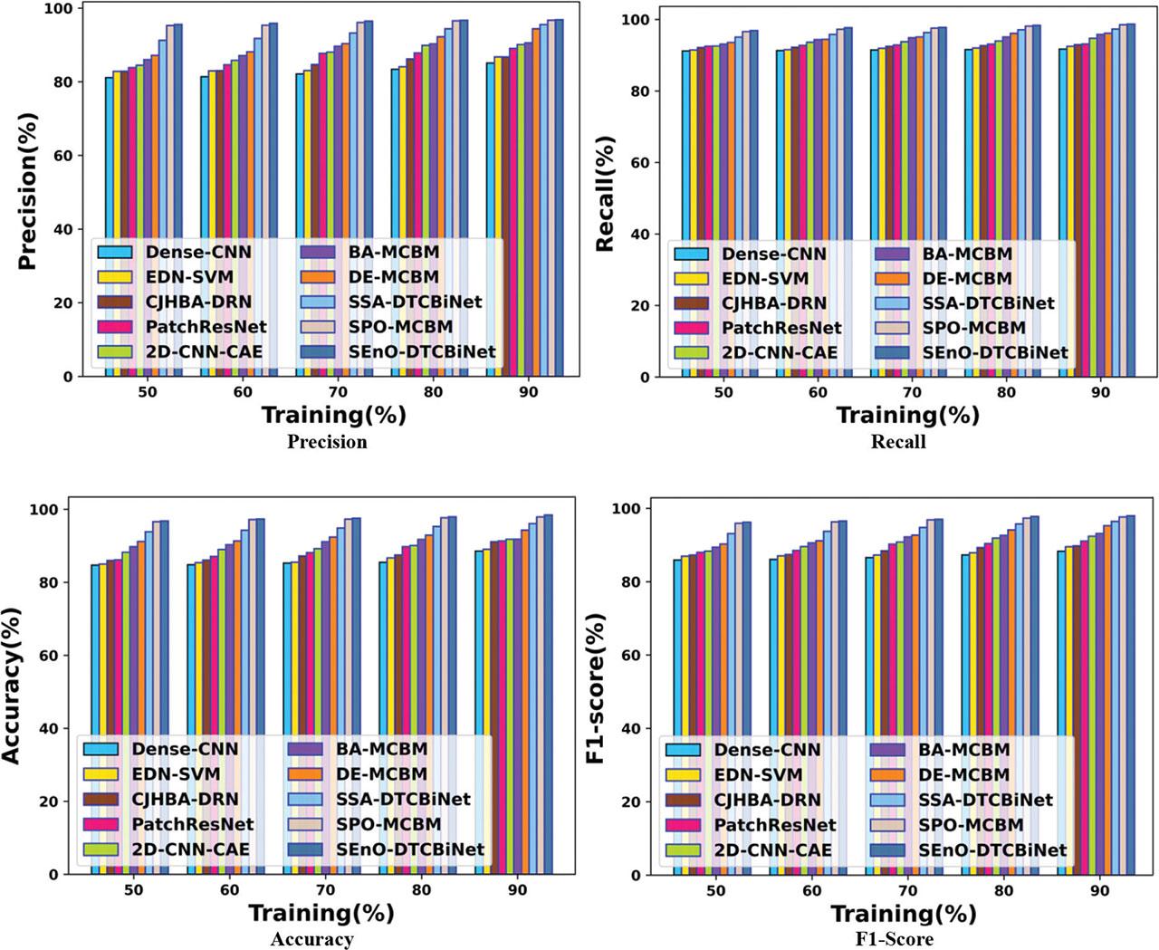 | Methods/metrics | SSA-DTCBiNet | Dense-CNN | BA-MCBMM | EDN-SVM | 2D CNN-CAE | CJHBA-DRN | Patch ResNet | DE-MCBM | SPO-MCBM | SEnO-DTCBiNet | |
