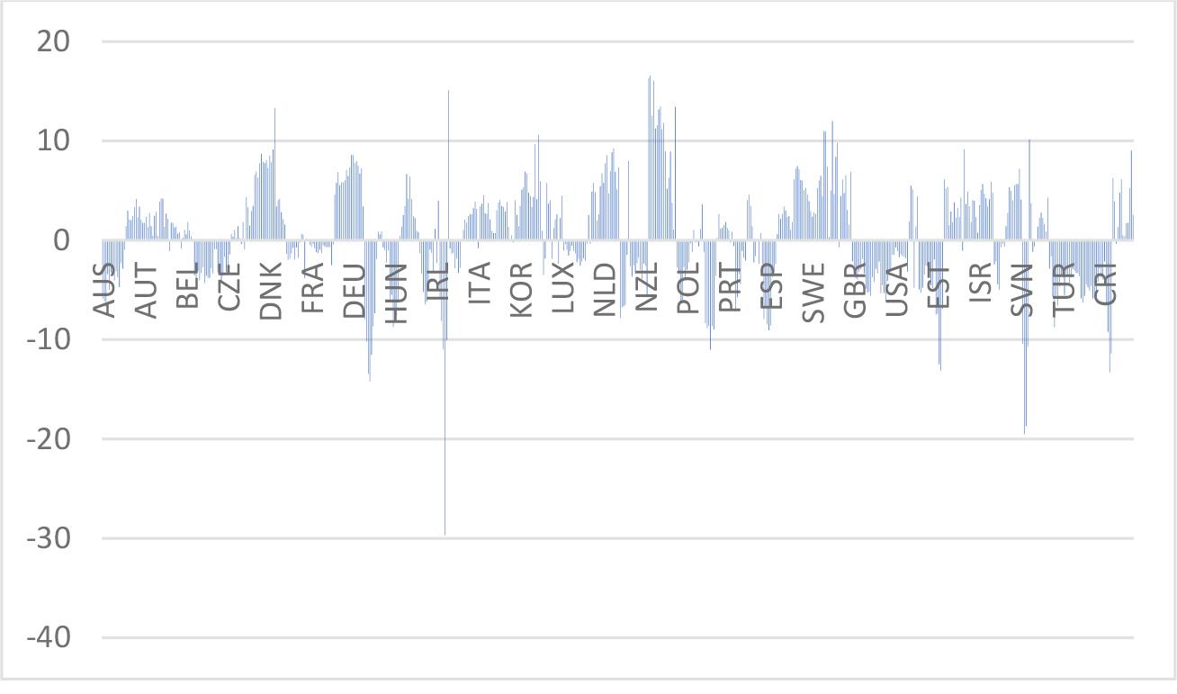 Net lending in OECD countries from 2011-2021